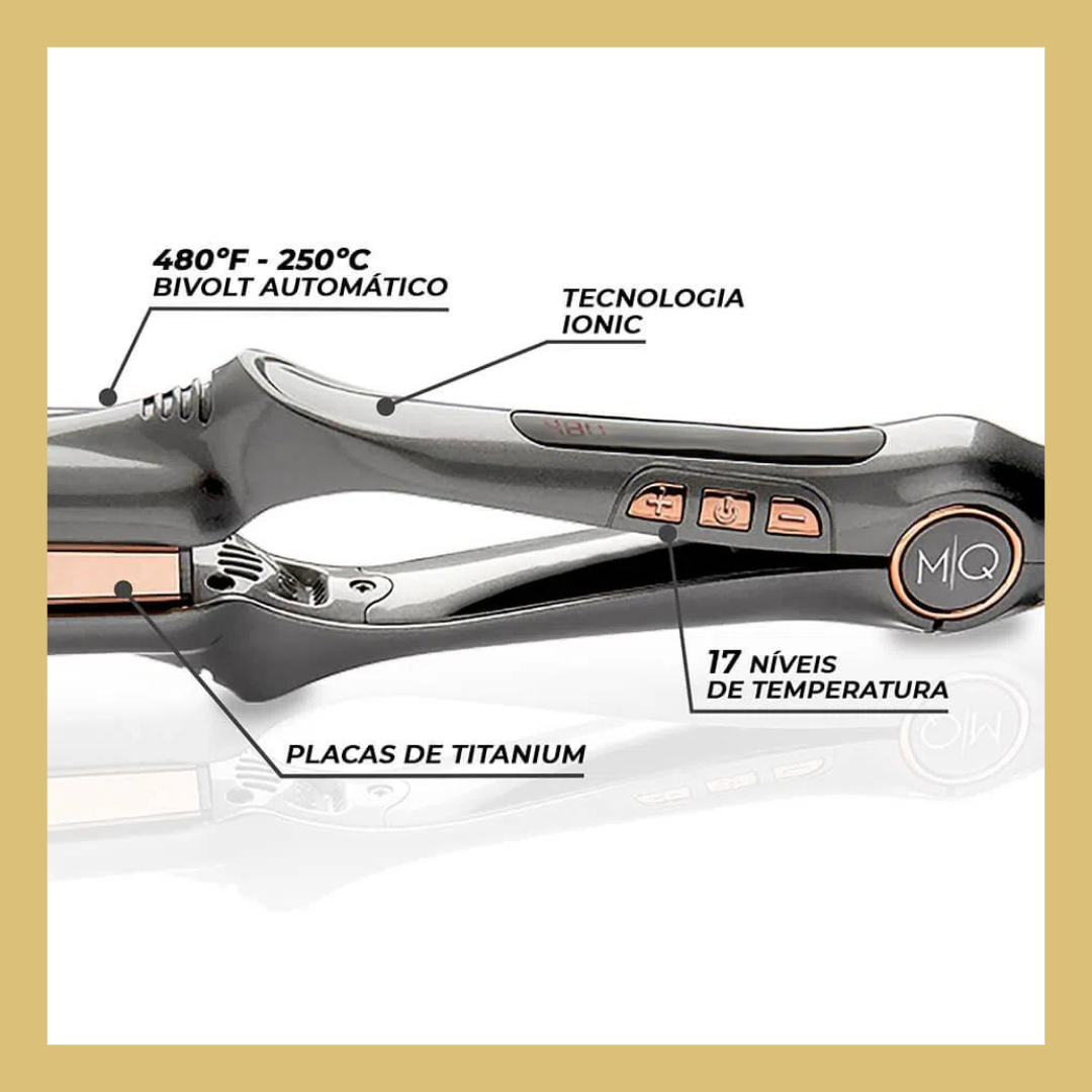MQ PRO 480 titan rettetang med en ionegenerator er et profesjonelt produkt for å utføre keratin, nanoplasti, botox og andre behandlinger.