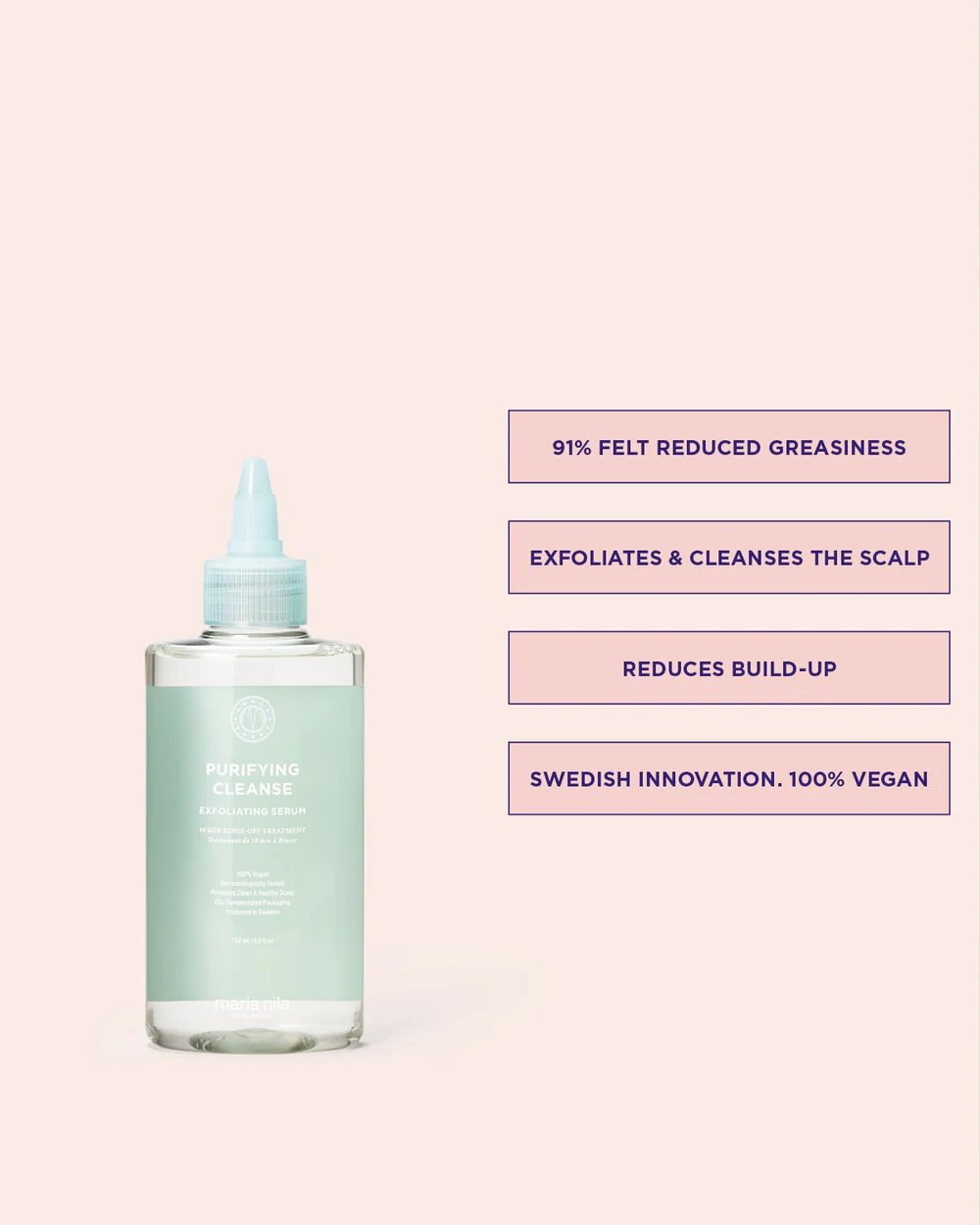 Purifying Cleanse Exfoliating Serum er en 10-minutters skyllebehandling designet for å avgifte og rense hodebunnen samtidig som fuktighetsnivået opprettholdes. Formulert med 5 % glykolsyre, aloe vera og provitamin B5, eksfolierer dette serumet dypt hodebunnen, fjerner opphopning og rester uten å tørke ut håret. Ideell for de som opplever flassende, kløende eller fet hodebunn, sikrer dette dermatologisk testede serumet en ren og sunn hodebunn.
